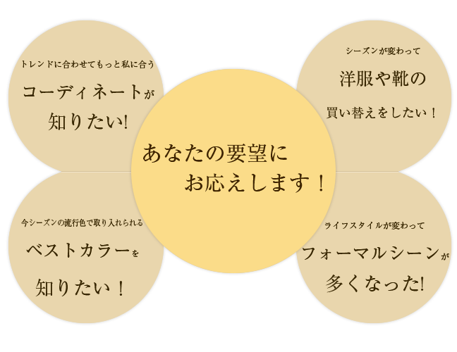 「今シーズンは、カラー診断を受けてわかったけど来シーズンはどうしたらいいの?」等、ご質問の他、