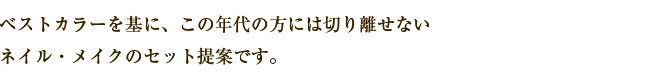 トータルコーディネート提案でオフィスからカジュアルまでと服飾雑貨・ネイル・メイクまでのご提案です。ネイルで大切なのは似合う色と好きな色が違うこと。
